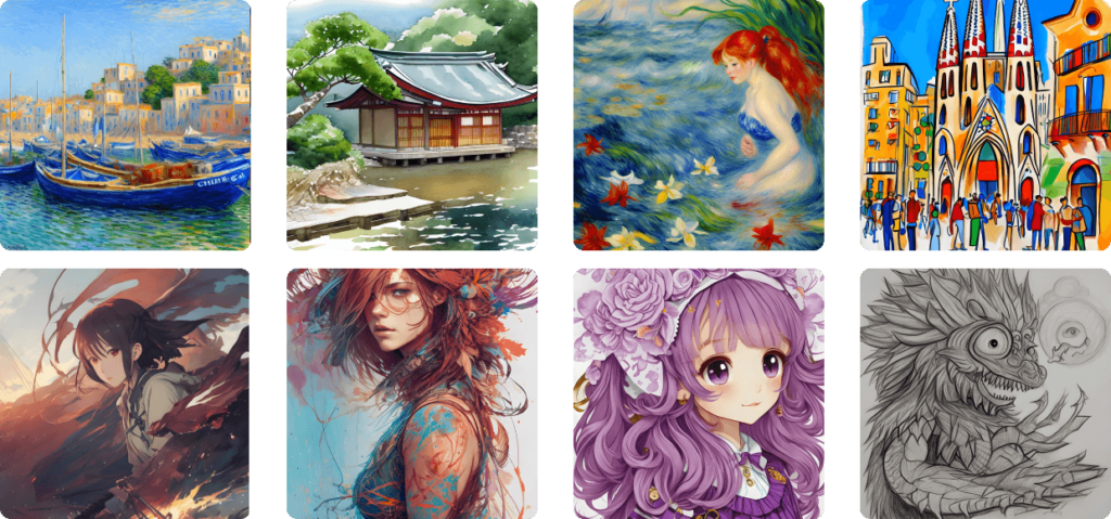 Como se mencionó anteriormente, tienes una variedad de estilos artísticos para elegir. Mientras tanto, para obtener una inteligencia artificial pintura más atractiva, recuerda ajustar el tamaño y especificar cualquier elemento que no desees ver en tus pinturas.