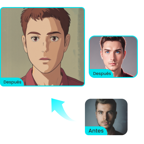 Utilizando el Conversor de Foto a Anime de Artguru, puedes transformar fácilmente retratos, fotos de tus familiares, de tus mascotas, paisajes o cualquier otra imagen que desees convertir al estilo de anime que más te guste. Ya sea en un estilo clásico de anime japonés, el encantador estilo coreano de webtoon o el vibrante estilo de dibujos animados estadounidense, este conversor de imágenes te permite dar vida a tus fotos con un toque artístico único y creativo. La conversión de tus fotos a imágenes de anime en cualquier estilo se ha convertido en una forma divertida de reinventar cualquier imagen, explorar diferentes estilos visuales y ofrecer una experiencia artística personalizada para cualquiera que quiera agregar un toque de magia de anime a sus fotos.