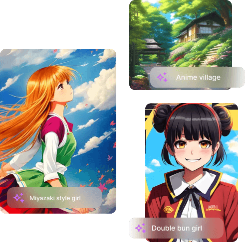 Artguru AI 運用強大的算法快速生成動漫藝術。只需幾秒鐘,你就就能完成動漫角色創建。