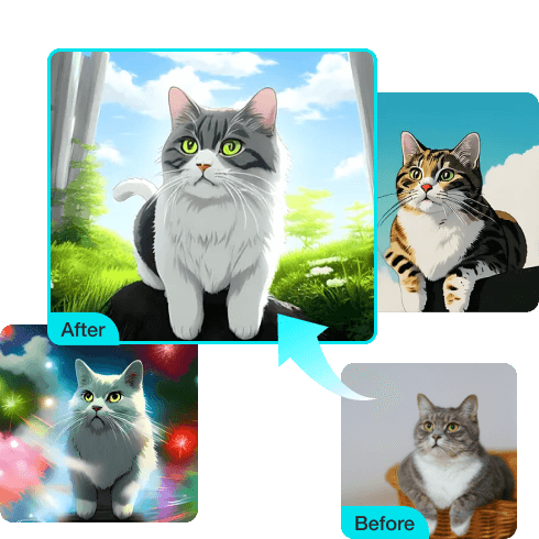 想知道你在動漫世界裡面看起來會是什麼樣子嗎? 透過Artguru AI 動漫生成器,你可以輕輕鬆松把照片漫畫化及卡通化,還可以創建自己的專屬動漫頭像。這并非簡單地套用卡通濾鏡,而是利用先進的算法和機器學習技術分析輸入的圖像,並應用其對動漫特徵的理解來生成動漫風格的藝術作品。上傳你的照片,探索各種動漫風格,包括動漫、宮崎駿工作室、卡通、奇幻3D等等,準備好地將照片轉化為引人入勝的動漫藝術作品!