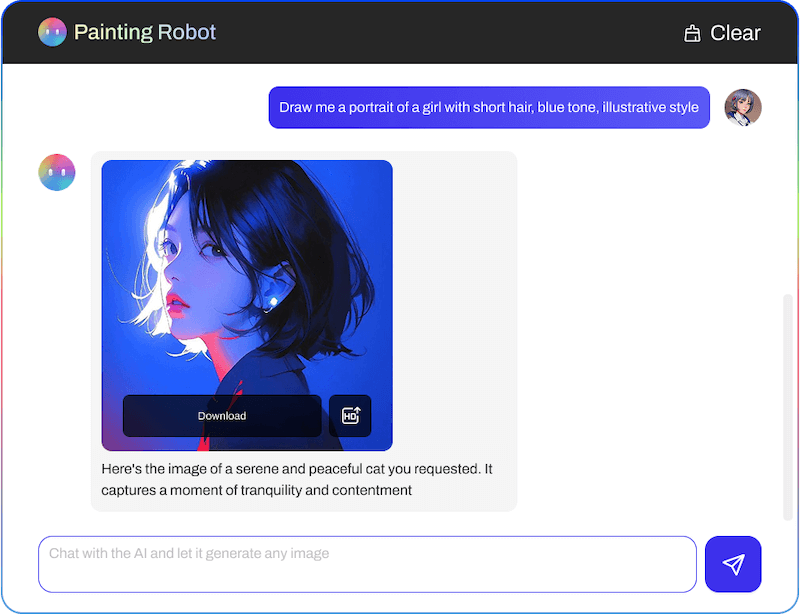 AI chatbot is ready to answer any questions and create text content. Tell it exactly what you need—whether it’s any question you have in mind or the topic and tone for written content. This chatbot provides clear, informative answers to your questions and understands context to create text that hits the mark, whether you’re after blog posts, stories, scripts, or marketing materials. Just ask, and consider it done.