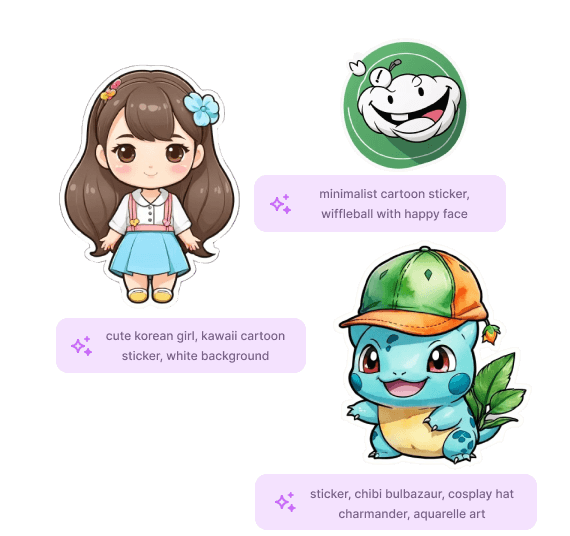 Create personalized stickers for any purpose – decorating, labeling, promoting, collecting or chatting! Artguru’s AI sticker generator empowers you to design eye-catching stickers effortlessly.