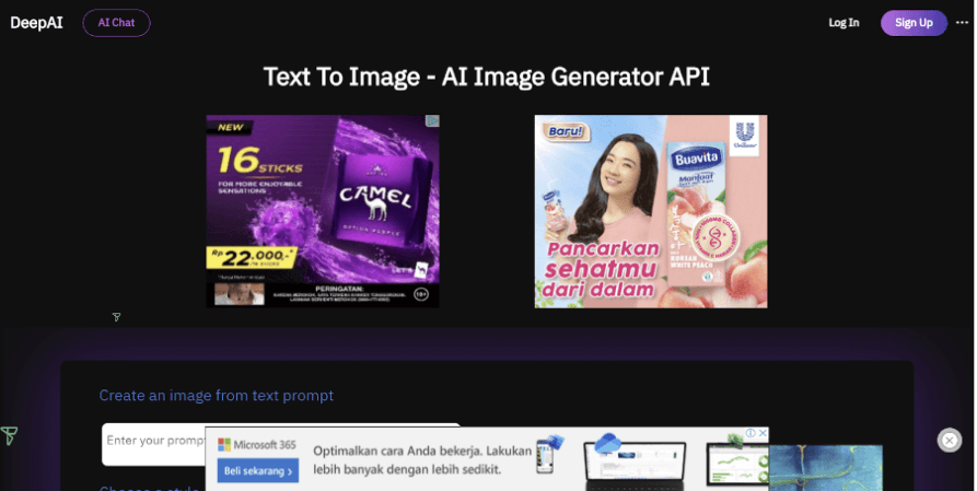 Deep AI is an AI art generator that uses machine learning algorithms to create original artwork. It can be used to create various types of art, such as paintings, sketches, and digital art. However, unlike other tools that require you to upload images, this platform only needs the keywords or description of your images, and it will find one related to them.