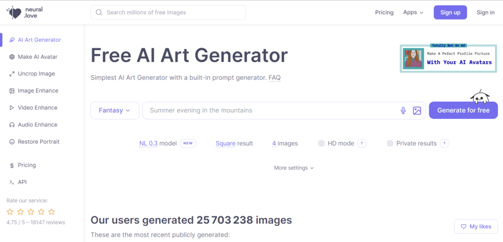 - User-friendly interface: it has a very straightforward interface that can create images in a matter of seconds.