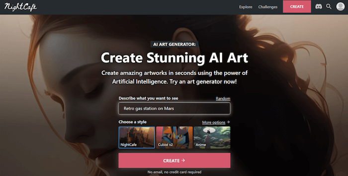 The name NightCafe is inspired by Vincent van Gogh’s famous painting “Café Terrace at Night,” which is also one of the paintings in the NightCafe dataset. This platform is created with an advanced learning algorithm that can create unique pieces of art. The algorithm is trained on a large dataset of famous paintings, which as a result can create new artworks based on specific parameters such as style, color, and composition.