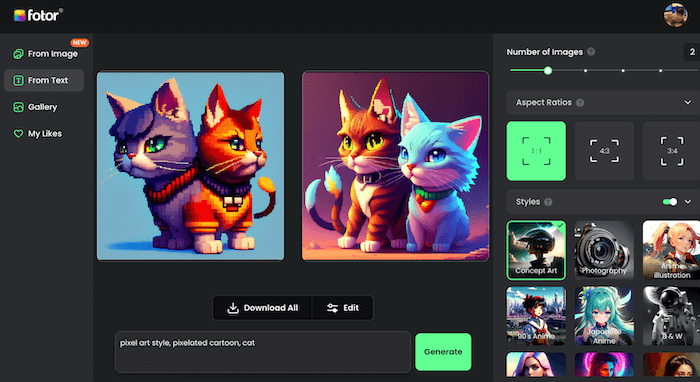 Fotor AI Pixel Art Generator, also known as the AI Pixel Generator, is an innovative tool that simplifies the process of creating pixel art. It uses the power of artificial intelligence to transform your ideas into a beautiful pixel art masterpiece with just a few clicks. In other words, it is a powerful text-to-image AI tool.