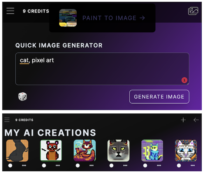 - History: it has “My AI Creations” menu, which is the collection of your recent artwork.