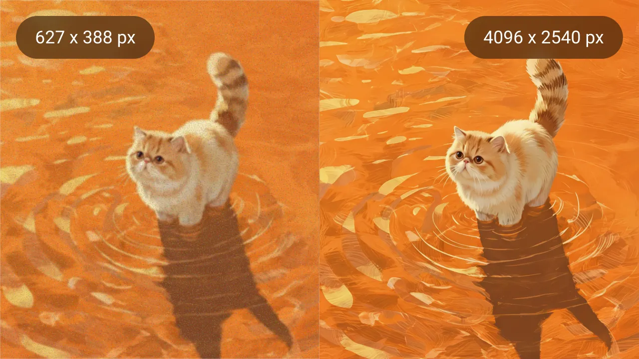 Don’t worry about losing the quality of your AI art when upscaling with Artguru’s powerful image upscaler. Artguru does only one thing — enhance clarity and upscale your images. This means we will not alter or distort your artwork, nor change any colors or lighting. We remain completely faithful to the original image’s style, making your creations stay sharp in print, on big screens, or anywhere else you showcase it.